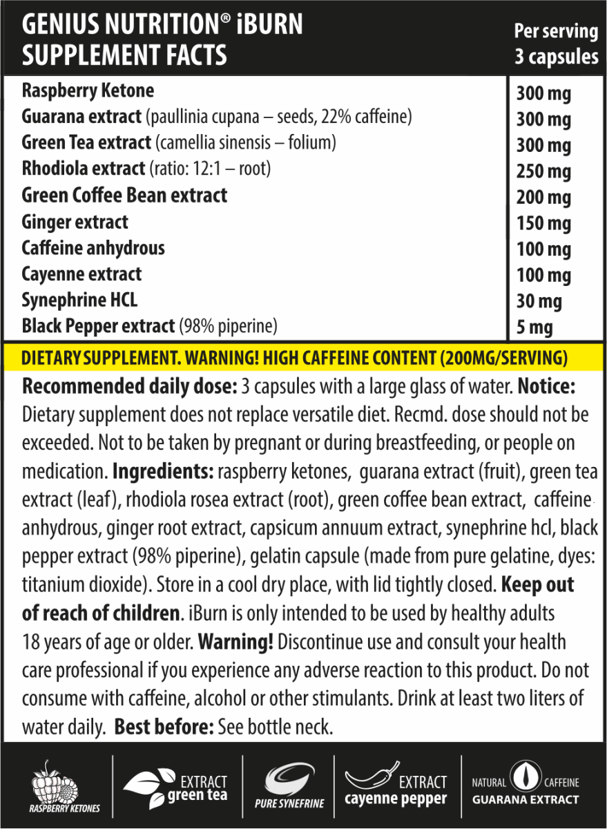 Genius Nutrition iBurn este un supliment alimentar de tip: arzator de grasimi.